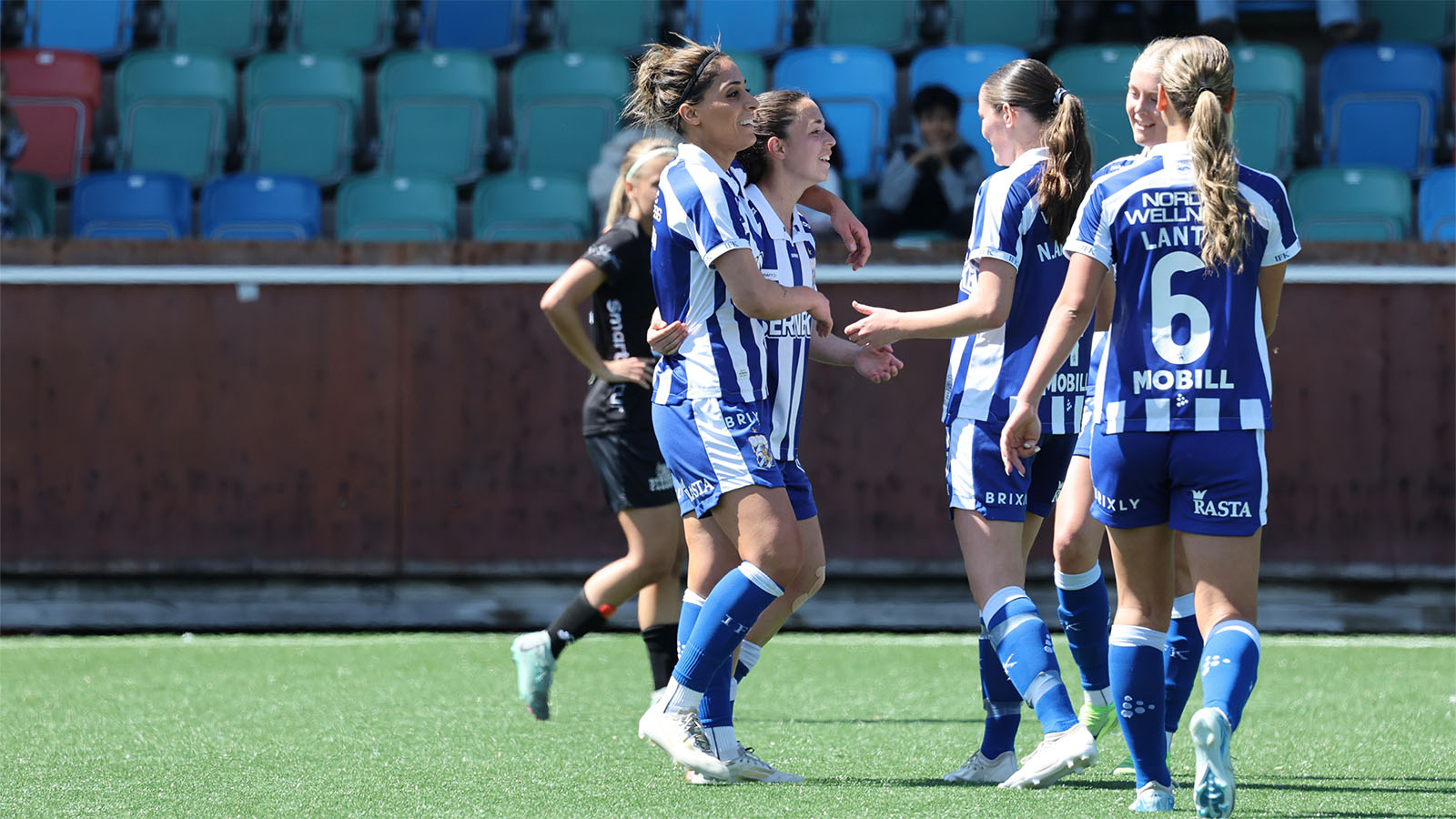Blåvitt fortsatte i samma spår direkt efter paus. Bara två minuter in i andra halvlek satte Parva Zarassi 4–0 innan Leia Molund fullbordade sitt hattrick med ett kliniskt nickavslut till 5–0 i den 54:e minuten.